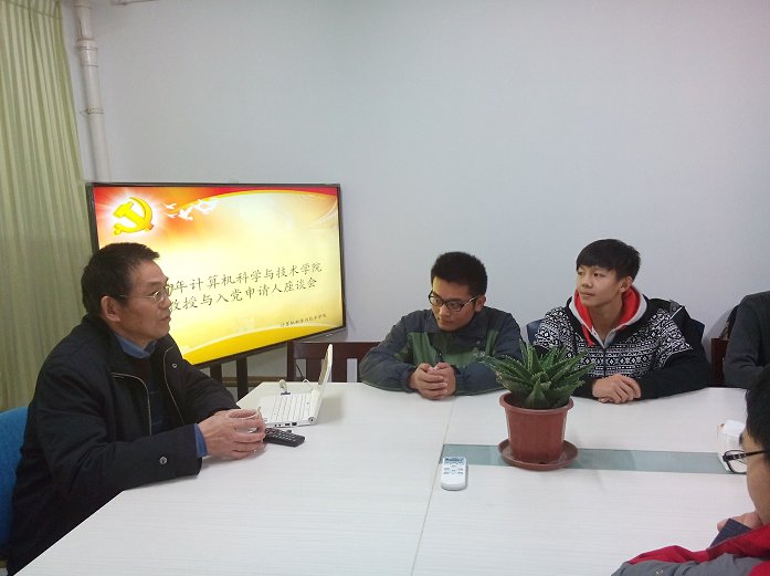 12月5日下午,计算机学院召开入党申请人座谈会,学院关工委老教授苏厚勤、特邀党建组织员卫玲琍参加座谈会,与学生面对面畅谈“坚定理想信念,端正入党动机”。