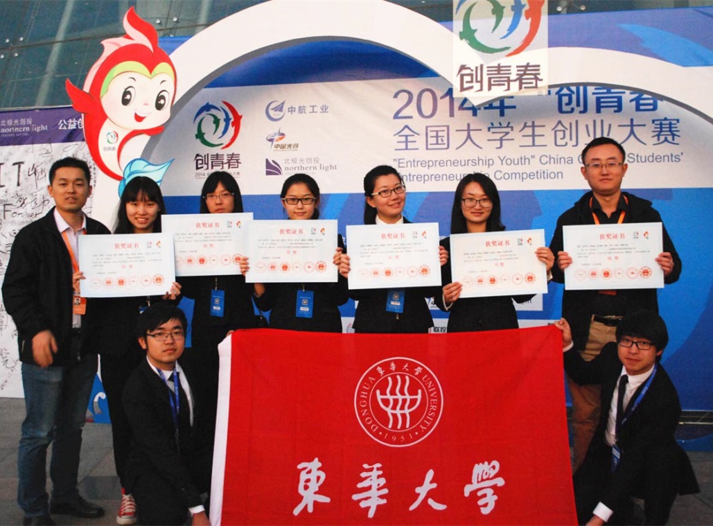 为进一步营造浓厚的创新创业氛围,扎实做好参赛工作,校团委联合教务处、研究生部在去年3月发布大赛校内选拔赛通知,启动竞赛申报选拔工作,经校内初审,纺织、材料、信息、计算机、服装、管理等学院提交的45件作品参加校内选拔,推荐14件作品参加市级选拔赛。在市级比赛中喜获335铜,6件作品入围2014年“创青春”全国大学生创业大赛终审决赛。此外,我校申报的4件作品在2014年“创青春”全国大学生创业大赛移动互联网创业专项赛和MBA专项赛中还收获了31银的好成绩。