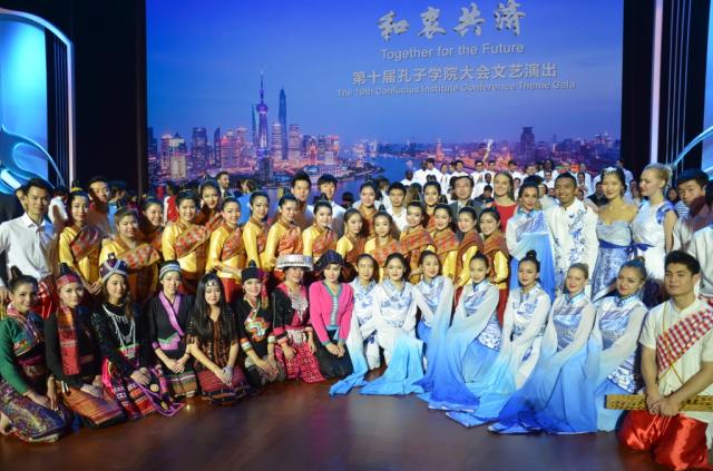 12月6日,第十届孔子学院大会在上海召开,我校选派来自丹麦、保加利亚、蒙古、老挝、印尼、俄罗斯等国的53位优秀留学生参与文艺演出,节目有《青花瓷》歌舞、老挝歌曲联唱、《中国范》舞蹈,并推荐校友妮卡(拉脱维亚)担任节目主持人。来自全球130多个国家和地区的大学校长、孔子学院代表观看了文艺演出,我校选送的节目获得了广泛好评。