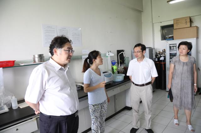 在化工生物学院,蒋昌俊一行走进生物材料实验室,与师生们亲切交谈,询问需求,叮嘱大家一定要把实验室安全放在科研工作的重要位置抓严抓牢抓好,严格遵守相关安全守则,不放松一丝警惕,切实以安全规范的科学实验为科研创新提供有力支撑和坚实保障。