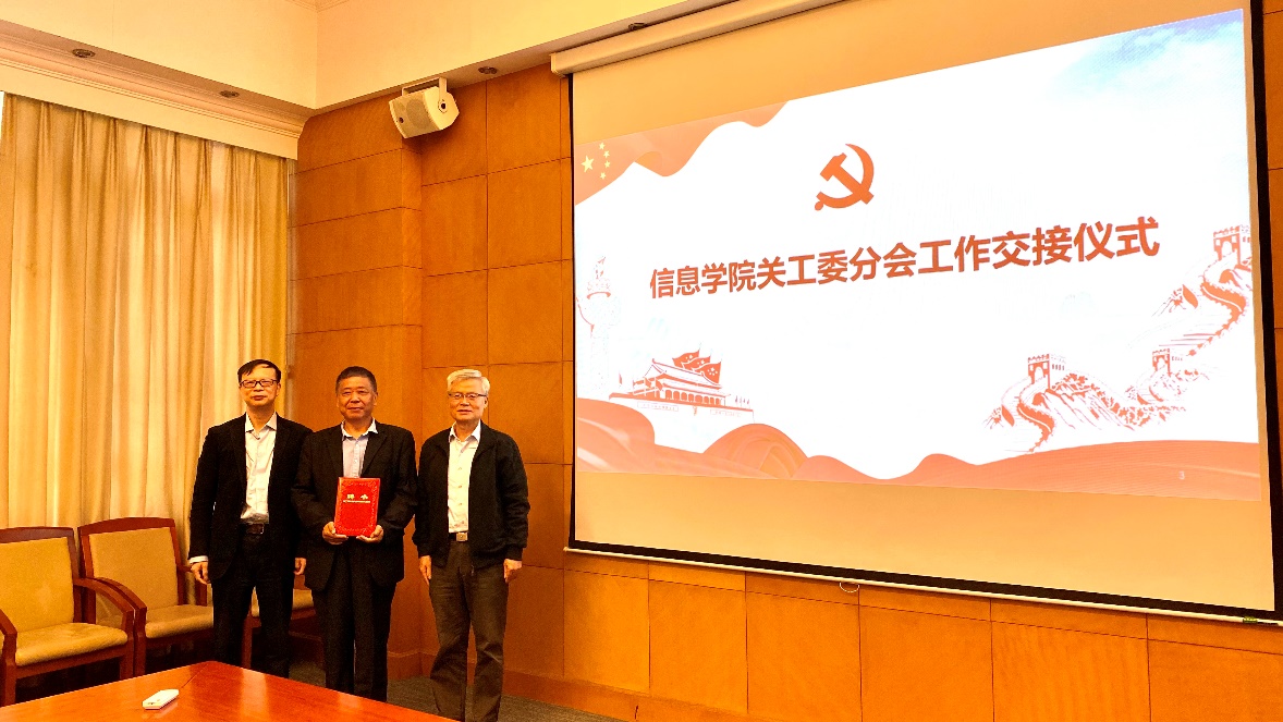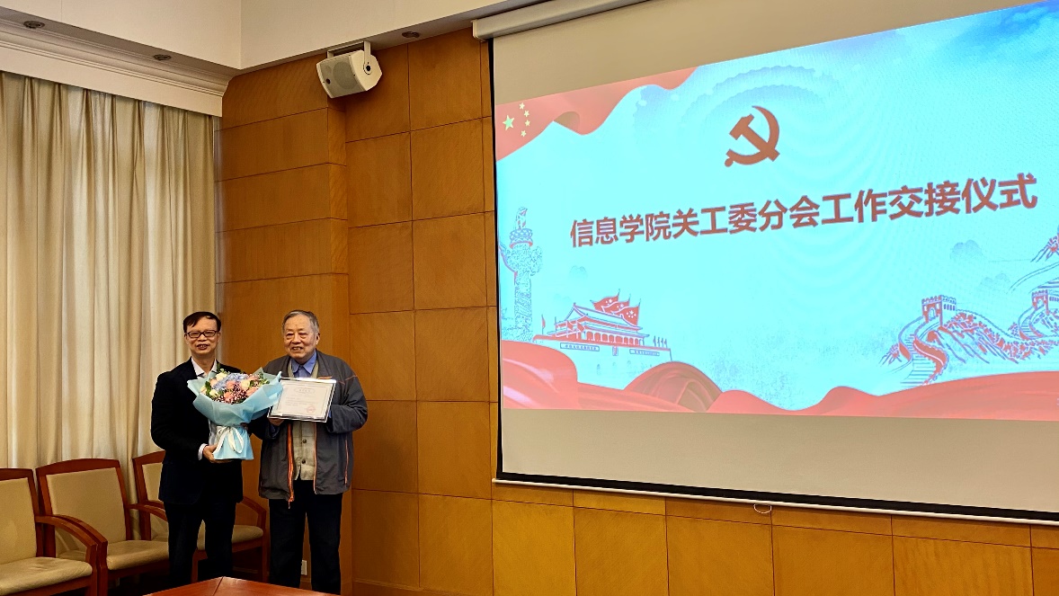 浦解明在总结中谈到,信息学院关工委的工作一直都非常扎实,这离不开学院党委的领导与支持,离不开耿兆丰九年来用“爱心、责任心、恒心”对关工委工作的无私奉献;希望官洪运尽快熟悉工作,带领信息学院关工委分会主动融入学院中心工作,坚持立德树人,准确把握定位,厘清工作主线,协助学院党委开展学生思政教育,做到“到位不越位”,助力学院“三全育人”格局下的课程思政建设;希望学院党委加强对院关工委的领导,明确工作要求,指点发展方向,树立学院关工委特色品牌。