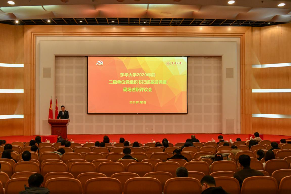 1月5日,学校党委召开2020年度二级单位党组织书记抓基层党建工作现场述职评议会。教育部党建工作联络员刘建中,党委书记刘承功,校长俞建勇,党委副书记崔运花,党委副书记、纪委书记王云骏,副校长邱高、陈革、陈南梁、舒慧生、李炜,党委常委朱英、任晓杰出席会议,会议由崔运花主持。