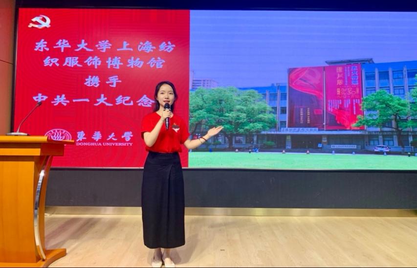 讲解中,李佳钰围绕“星火初燃·青春相传”这一主题,将我校纺织服饰博物馆与中共一大纪念馆携手举办的“星火初燃:共产党早期组织与中国共产党的创建文物史料图片展”带到比赛现场,以“云讲解”的形式带领观众一起回顾中国共产党从孕育到正式成立的历史进程,同时激励广大青年赓续红色血脉、传递红色星火,以昂扬的姿态迎接建党百年。