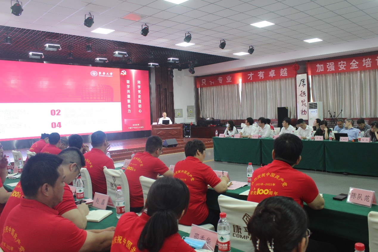 6月19日,党委副书记王云骏参加化工生物学院党史学习教育暨与康平纳党委联组学习活动并讲授专题党课。学院班子成员、支部书记、系(室、中心)主任、尚实青年教师培训班教师代表、生物系党支部教师等30余人赴山东泰安参与活动。山东康平纳集团有限公司党委近40人参加联组学习。学习活动由化工生物学院院长武培怡主持。