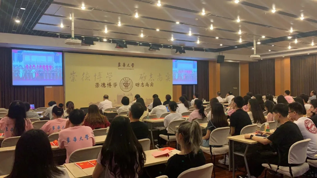 晨光初曦,东华校园微风轻飏、红旗漫卷,我校庆祝中国共产党成立100周年升旗仪式在两校区同步举行,上千名师生挥动鲜艳的党旗,在晨曦中向党深情告白。“光荣在党50年”纪念章获得者、我校退休教师贺善侃、梁方义,与00后青年学生党员从不同党龄、不同经历分享与中国共产党的故事,并带领全体党员重温入党誓词,完成两代人的信仰对话。100位东华学子创意排列成“100”字样的队形,退伍大学生代表带领全场高唱《没有共产党就没有新中国》,为党的100岁生日献上一份特殊的生日礼物。