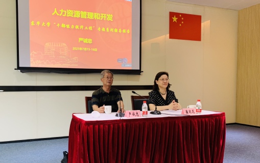 7月15-16日,学校在松江校区举行“干部能力提升工程”之《人力资源管理和开发》专题培训,邀请原全国人大代表、管理学院教授严诚忠作专题系列辅导报告,延安路校区设视频分会场。学校处级干部、科级干部、民主党派与统战团体主要负责人、市、区级党外人大代表和政协委员、党支部书记、专职党务干部和第十五期青干班学员等150余人参加学习,报告由党委副书记崔运花主持。