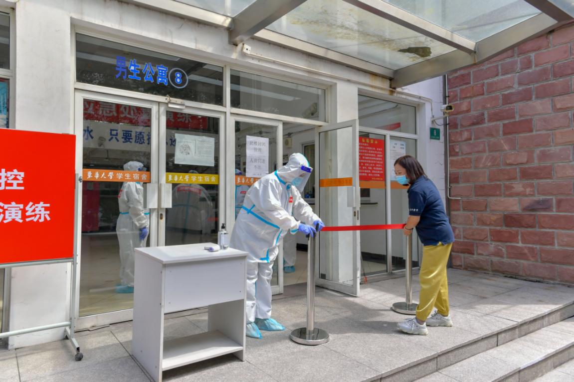 8月30日,学校在松江校区举行2021年秋季开学疫情防控应急处置演练。校领导班子成员、相关职能部处、各学院主要负责人及师生员工代表等共同参加演练。副校长陈南梁主持演练。