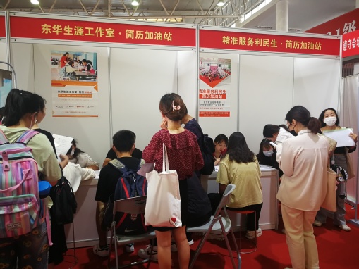 在本次招聘会上,学生就业服务中心党支部坚持践行“一线规则”,首次在现场设立了简历加油站,联合学校职业(生涯)发展教育培育工作室为100多名学生提供简历咨询和就业指导服务,受到学生一致好评,充分彰显了党史学习教育成效。