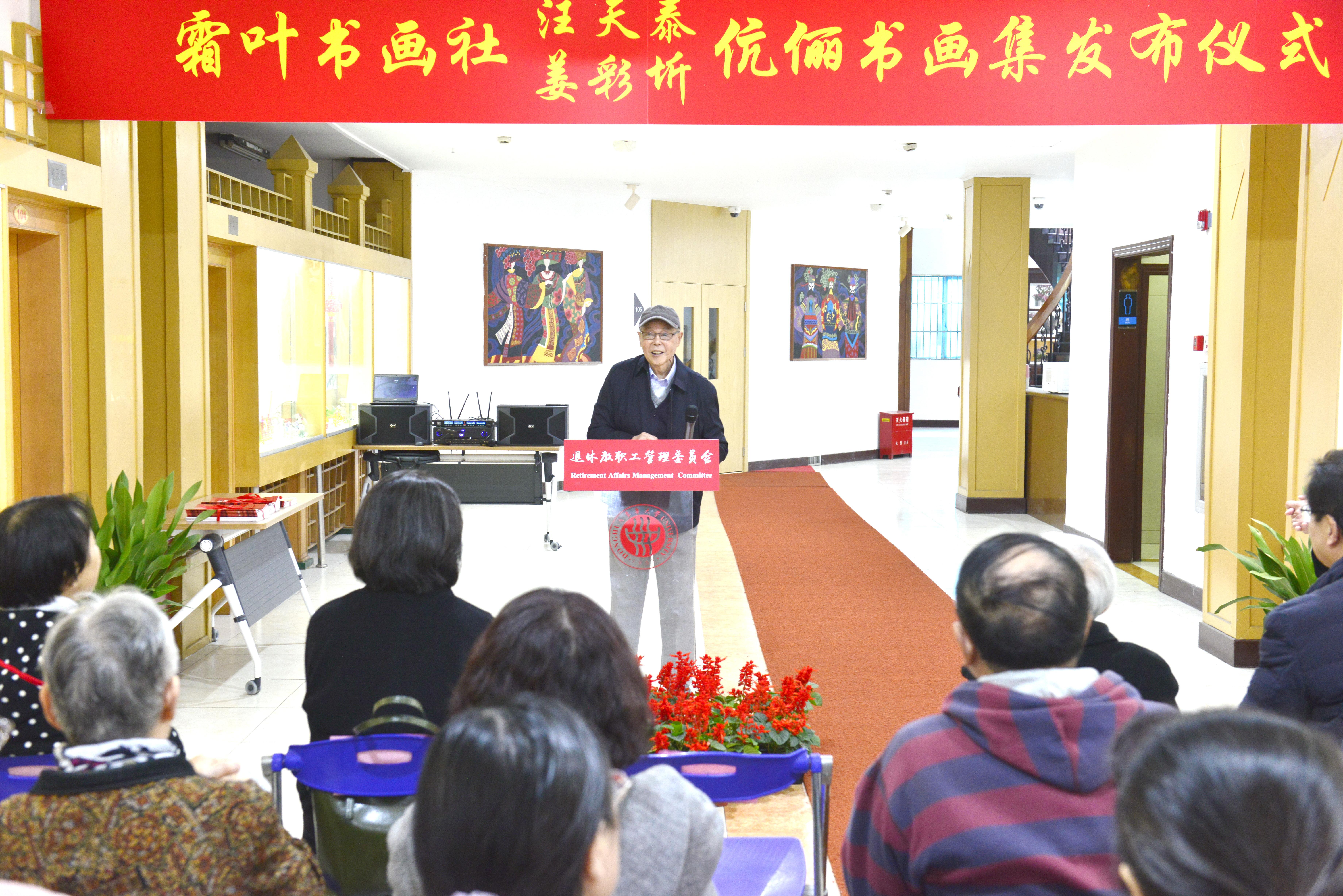 汪天泰对学校重视退休教职工的精神文化生活表示感谢,并介绍了夫妻两人的退休生活和学习情况,汪天泰、姜彩圻共同向书画社代表及所在的党支部代表赠送了画册。