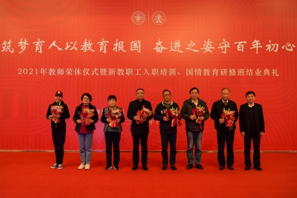 俞建勇代表学校向光荣退休的教职工致以感谢和敬意,向完成入职培训教育的新教职工以及国情教育研修的教师们表示祝贺。他指出,将荣休仪式与青年教师培训融合举行,寓意着育人初心和奋进使命在一代代东华人间薪火相传。建校70年来,学校发展取得的成绩离不开长期耕耘在教学、科研和管理服务一线的教职工的辛勤付出和无私奉献。荣休教师为学校的教育事业贡献了力量,为党和国家输送了一批又批可靠的栋梁之才,学校要礼敬退休教师,弘扬敬老、爱老、护老的精神,让退休教职工在政治上有荣誉感、在组织上有归属感、在生活上有幸福感。他希望,全体新进教师、中青年教师要在政治上坚定信念,为党和人民培养担当民族复兴大任的时代新人;要坚持把“四个面向”作为重要使命,聚焦国之大局、国之大要、国之大事、国之大计,为实现高水平科技自立自强提供坚强支撑。