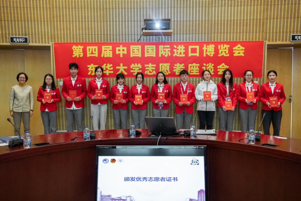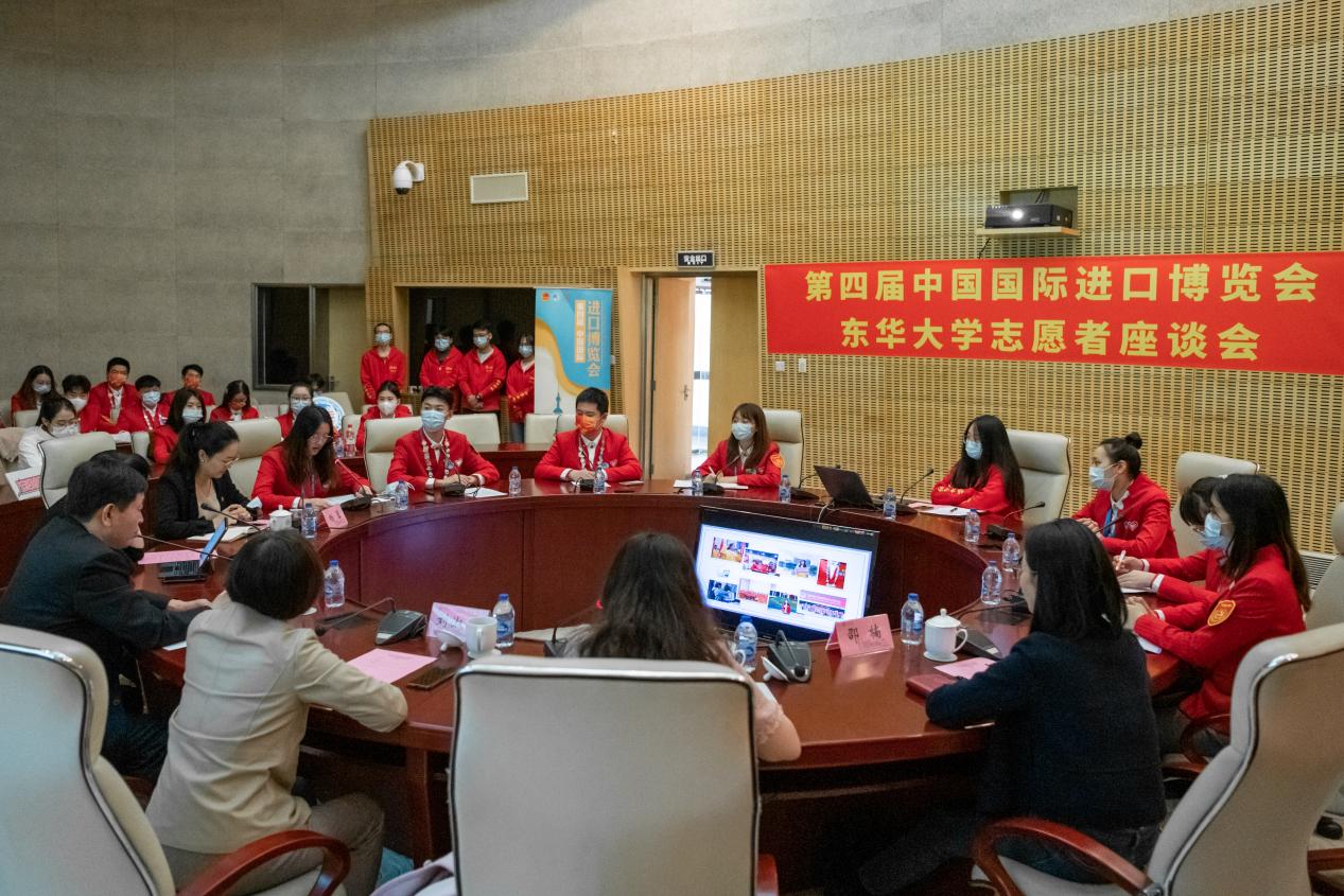 唱响红色经典歌曲、开展党史朋辈宣讲、实现党员身份转变……不同年级的东华“小叶子”围绕“我与进博共成长”主题作交流分享。凌晨的东华校园、深夜的国家会展中心,见证了“小叶子”不辞辛苦的志愿精神;一张张生动的照片、一段段感人的故事,蕴藏着“小叶子”与进博会的深厚感情。