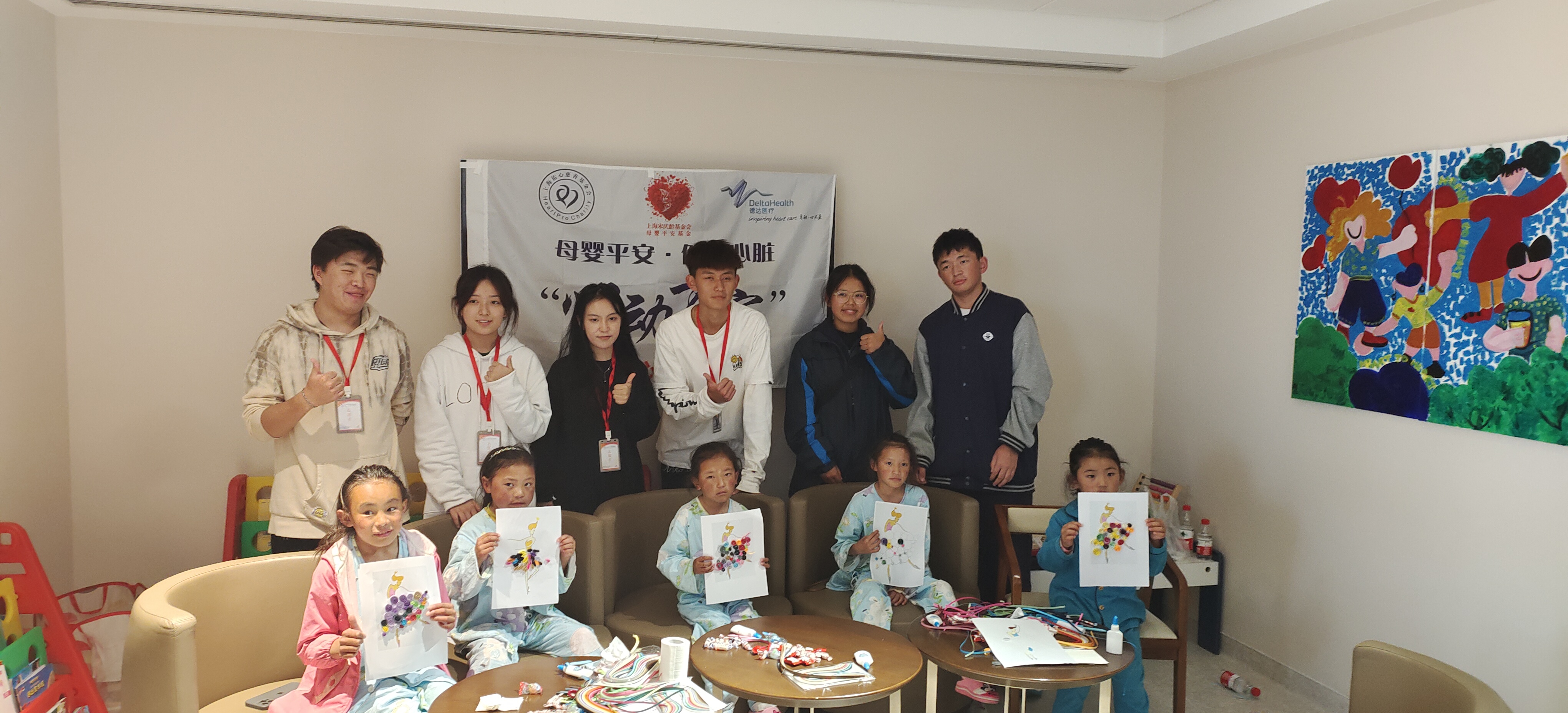 在短短5天时间里,10名志愿者为病房带来了笑声和温暖。嘎仓是此次接受救治的先心病患儿之一,十一岁的她身材瘦小,看起来像个五六岁的孩子,因长期患病导致她性格内敛,总是一言不发地坐在病床上,鲜少与人交谈。志愿者的到来打破了病房里的寂静,他们用家乡的语言抚慰着嘎仓,同她一起画画、做手工。嘎仓认真地往“画作”上填充颜色,画出了医院、东华的校徽,还有健康出院的藏族小姑娘,她的脸上也逐渐露出了笑容。