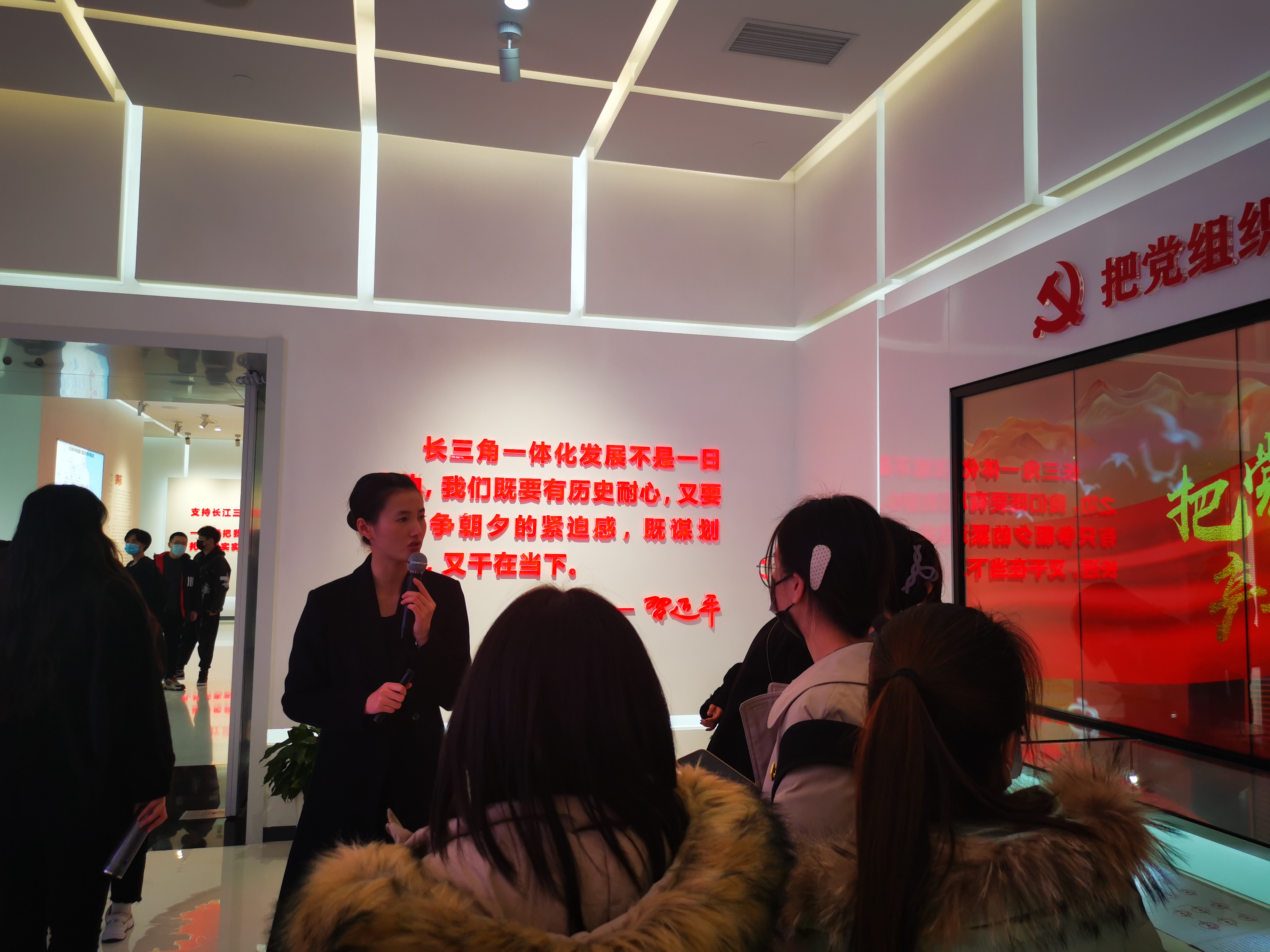 参观G60科创走廊规划展示馆的过程中,大家从宣传视频、展板、实物展品等多个方面了解了松江区在高端人才和企业引进、产业升级转型、创新技术研发等方面做出的战略部署、实施举措取得的重要成果,也深刻感受到从“松江制造”到“松江创造”迈进的历史性进程。在工作人员的讲解下,学生党员们依次参观了发展历程、科技创新、制度创新、党建引领四个展厅,详细了解G60科创走廊的建设背景、从1.0版升级为3.0版的发展历程、G60科创走廊的总体规划定位及发展目标。通过参观实物的形式,直观了解九城市在人工智能、高端装备、集成电路、新材料、新能源汽车、生物医药等战略性新兴产业的发展成果,真切感受G60科创走廊“科技创新”“制度创新”的双轮驱动成效。