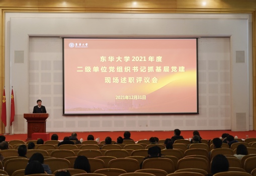 12月31日,学校党委召开2021年度二级单位党组织书记抓基层党建工作现场述职评议会。教育部党建工作联络员刘建中,上海市教卫工作党委系统党建服务中心干部周璇,校长、党委副书记俞建勇,党委副书记刘淑慧、崔运花,党委副书记、纪委书记王云骏,副校长邱高、李炜,党委常委朱英出席会议,会议由崔运花主持。