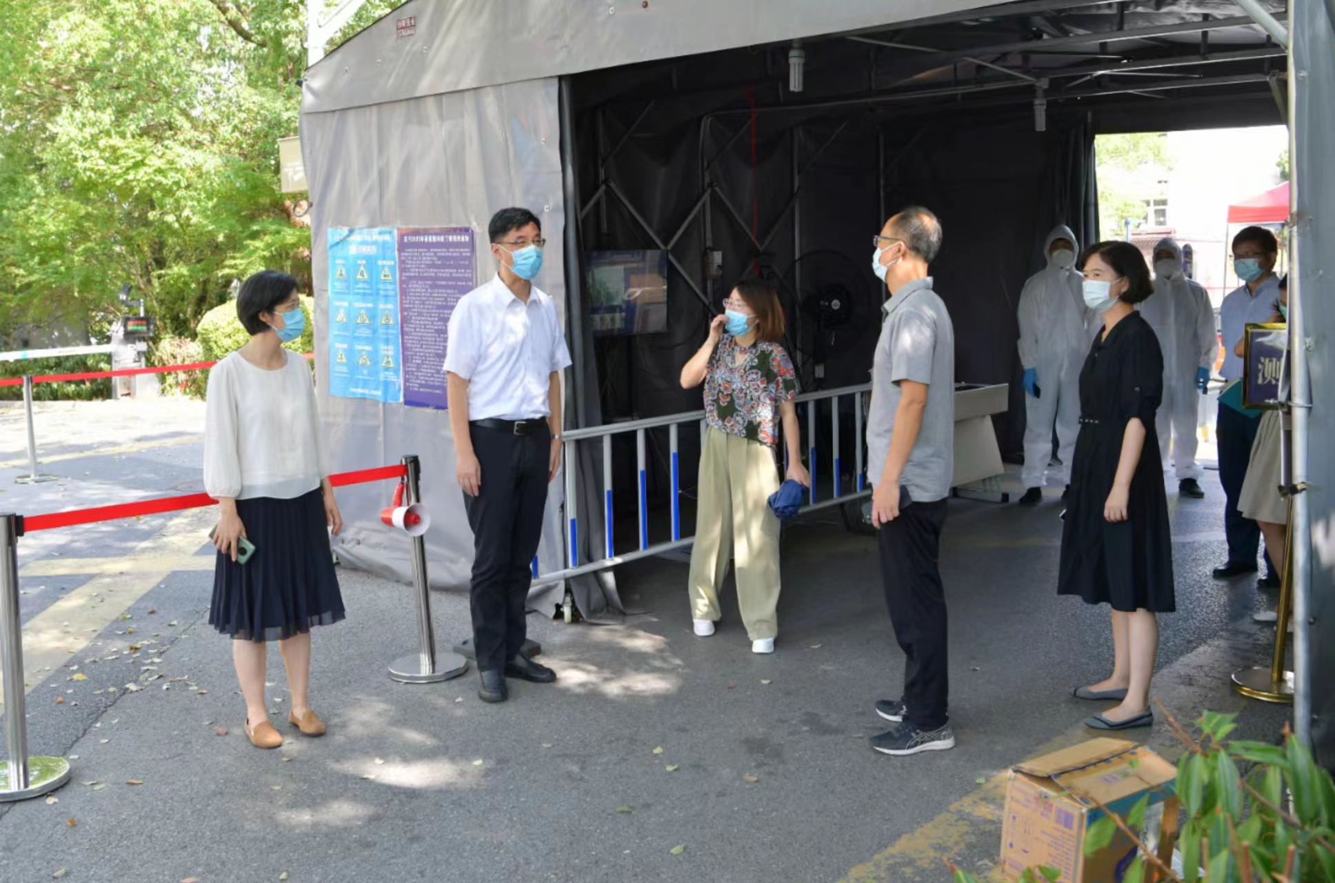 在延安路校区,俞建勇查看了图书馆、教学楼、校医院等场所,指出要以学生为中心,做好图书馆软硬件设施建设与更新,改善教学服务设施确保新学期教学工作平稳有序开展,对因疫情暂不能返校上课的学生加强关怀,切实提高服务质量,做好校医院人力资源的统筹安排,守护每一名师生的健康安全。在教育超市,俞建勇详细询问了商品进货备货保障情况,提出要保质、保供,为师生营造一个安全、舒适和有序的购物环境。俞建勇一行还查看了学生宿舍、食堂、体育馆等地,强调要落实精细化管理,强化服务意识,不断提升后勤服务保障工作水平。在服装与艺术设计学院,俞建勇指出,要细致周全做好教育教学、实验室安全各项开学准备,统筹抓好疫情防控、教学科研和服务保障各项工作,确保秋季学期工作有序开展,广大师生以饱满的热情投入到新学期,为学校高质量发展贡献力量。