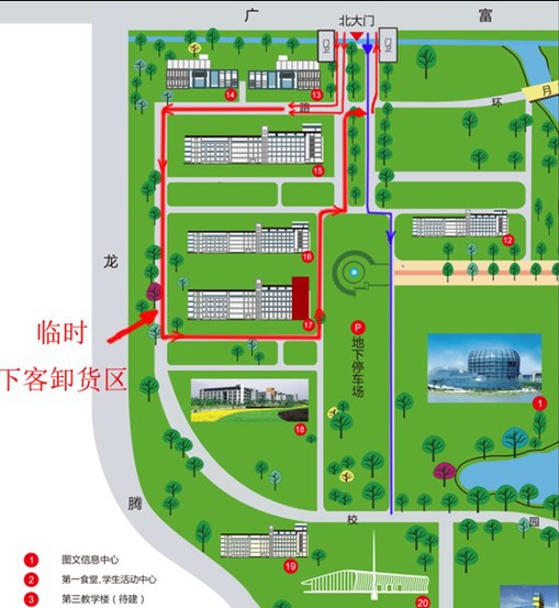 1、教职工来校尽量选择公共交通方式进校。如必须驾车,请从人民北路门(人民北路2999号)进校,现场请遵守保安指挥,将车辆停放在地下停车库。