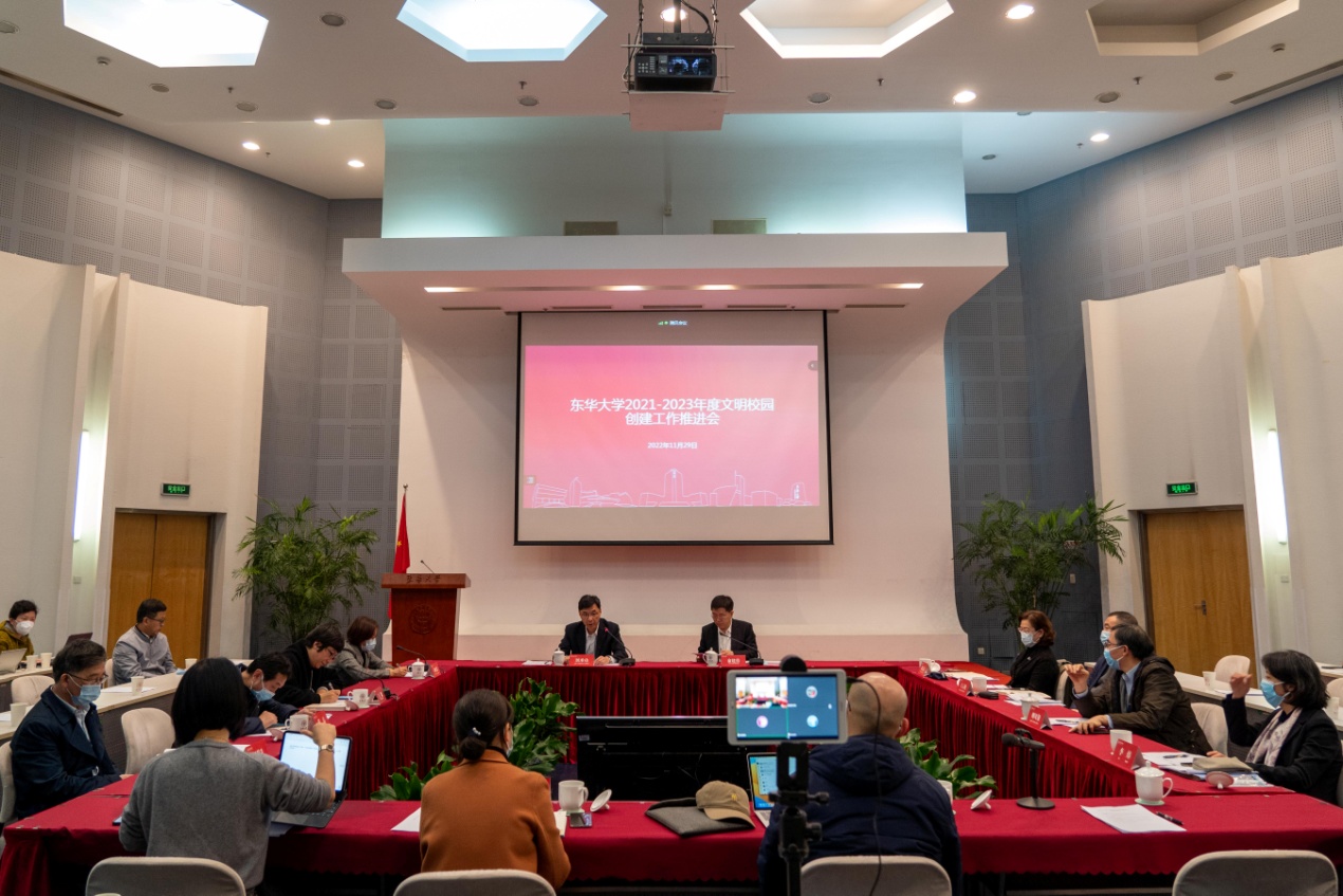 学校2021-2023年度文明校园创建工作推进会于11月29日召开,全面部署推进文明校园创建工作。党委书记刘承功,校长俞建勇,党委副书记刘淑慧、崔运花,党委副书记、纪委书记王云骏,副校长邱高、卿凤翎、舒慧生、李炜,党委常委、宣传部部长任晓杰出席会议。上海市文明办未成年人思想道德建设协调处处长王薇应邀出席并指导学校创建工作。会议由俞建勇主持。