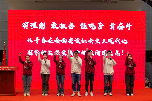 我校“学习进行时”学生理论宣讲团以“让青春在火热实践中绽放绚丽之花”为主题,在开幕式上带来了激情昂扬的学生学习宣传贯彻党的二十大精神宣讲展示。