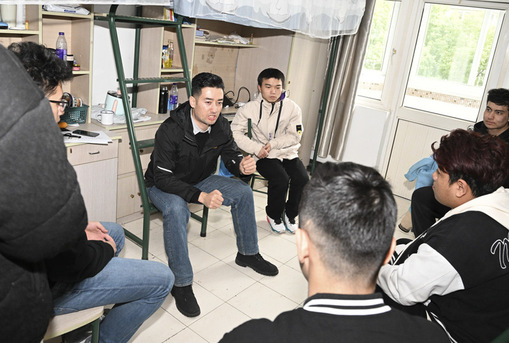 旭日工商管理学院少数民族学生辅导员努尔顿负责带的预科班有几十名少数民族学生,他直接到了男生宿舍,找同学们谈心。努尔顿说,虽然才开学,但是上课的时候感觉同学们活力不足,毕竟上了那么久网课,户外活动也少。“我今年想推进的工作是争取让每一个同学都能根据个人兴趣掌握一项小技能,摄影、摄像、表格制作啥都行,一项擅长的技能能让少数民族的学生更好地融入整个学校的学习生活氛围,这点很重要”,努尔顿说。