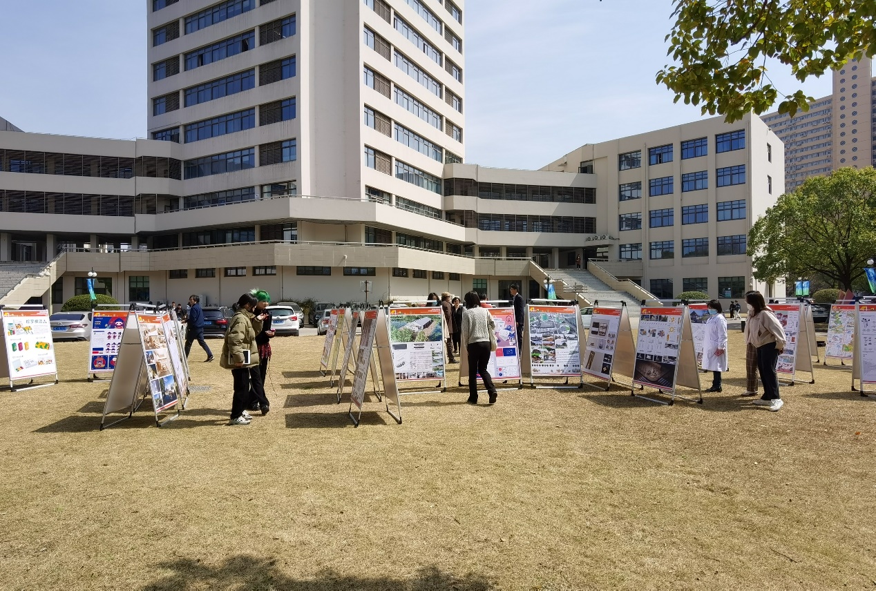 第四届“我为乡村种风景”长三角青年乡村振兴设计大赛共有全国范围内四十余所高校、企事业单位报名参赛并提交设计作品,经过第一轮高校专家线上评审与第二轮线下作品评审会,从400余件作品中筛选出31组优秀作品进行实地展览。继3月6日多所院校于上海市金山区田野巡展之后,此次草坪巡展以自由参观的形式面向师生开放。作为一项具有广泛影响力的专业赛事,大赛含有乡村空间设计、本土物产设计、短视频三个赛道,专业范围涉及环境设计、视觉传达设计、服装设计、服务设计、数字影像设计等,为高校师生提供了较为全面的参赛方向。参赛团队在实地考察、方案设计的过程中,切实将所学专业知识与实际项目相结合,不仅为高校师生提供了展示自我、相互学习交流的平台,更有效地促进了高校设计类专业教育改革,培养了大批具有较高艺术与人文素养、创新精神和实践能力的创意人才。