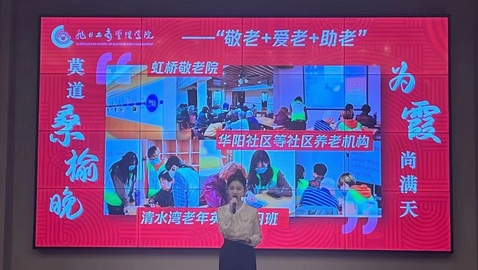 管理学院2011级校友、现复旦大学行政管理学在读博士生娜乌拜尔分享了大学四年的志愿工作体会,对管理学院志愿服务平台为其拓宽了人生的宽度和深度表示感谢。蒋勇介绍了目前智慧养老产业概况,建议大学生志愿者应当运用智慧养老思路和先进科技助力老龄事业。大会现场还收到了志愿项目服务对象发来的视频祝福。