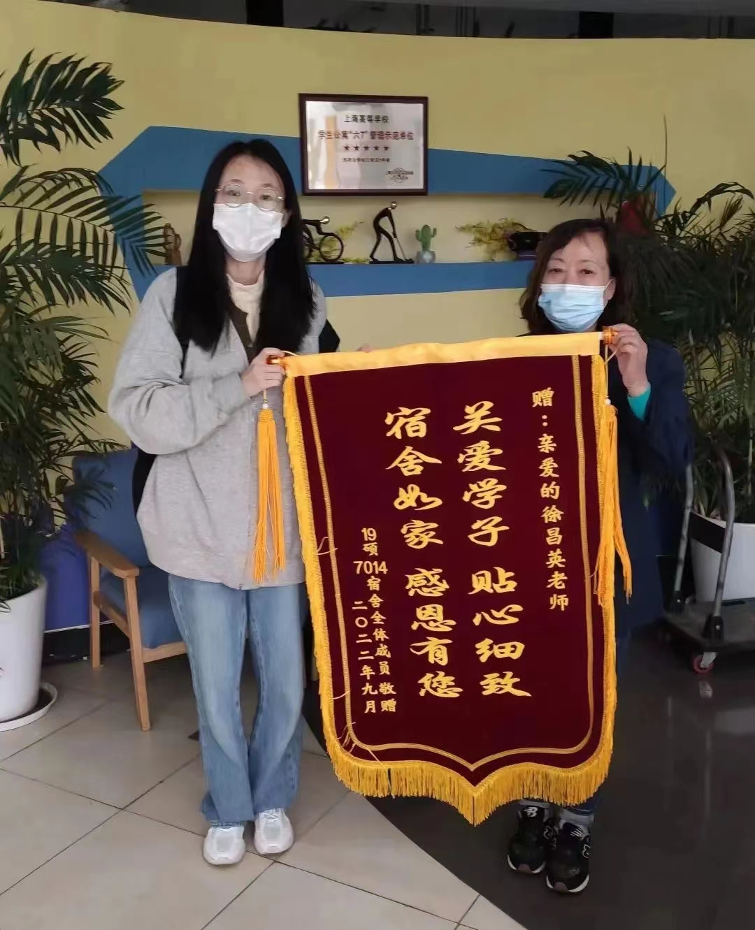 “爱都是双向的!”作为学生公寓的守家人,徐昌英阿姨从2007年进入东华校园,至今已走过十六个春夏秋冬,见证了一届又一届东华学子的成长。徐阿姨关心每一位入住楼里的同学,把他们都当成自己的孩子一样,多年来深得同学们的喜爱。徐阿姨经常在同学们耳边“唠叨”:“无论在校内校外,一定要安全第一,天亮了,注意添衣,身体健康最重要,希望你们都安安全全、开开心心毕业,这样阿姨就开心了!”朴素而真挚的话语背后,却道出了徐阿姨对学生的一片真心。