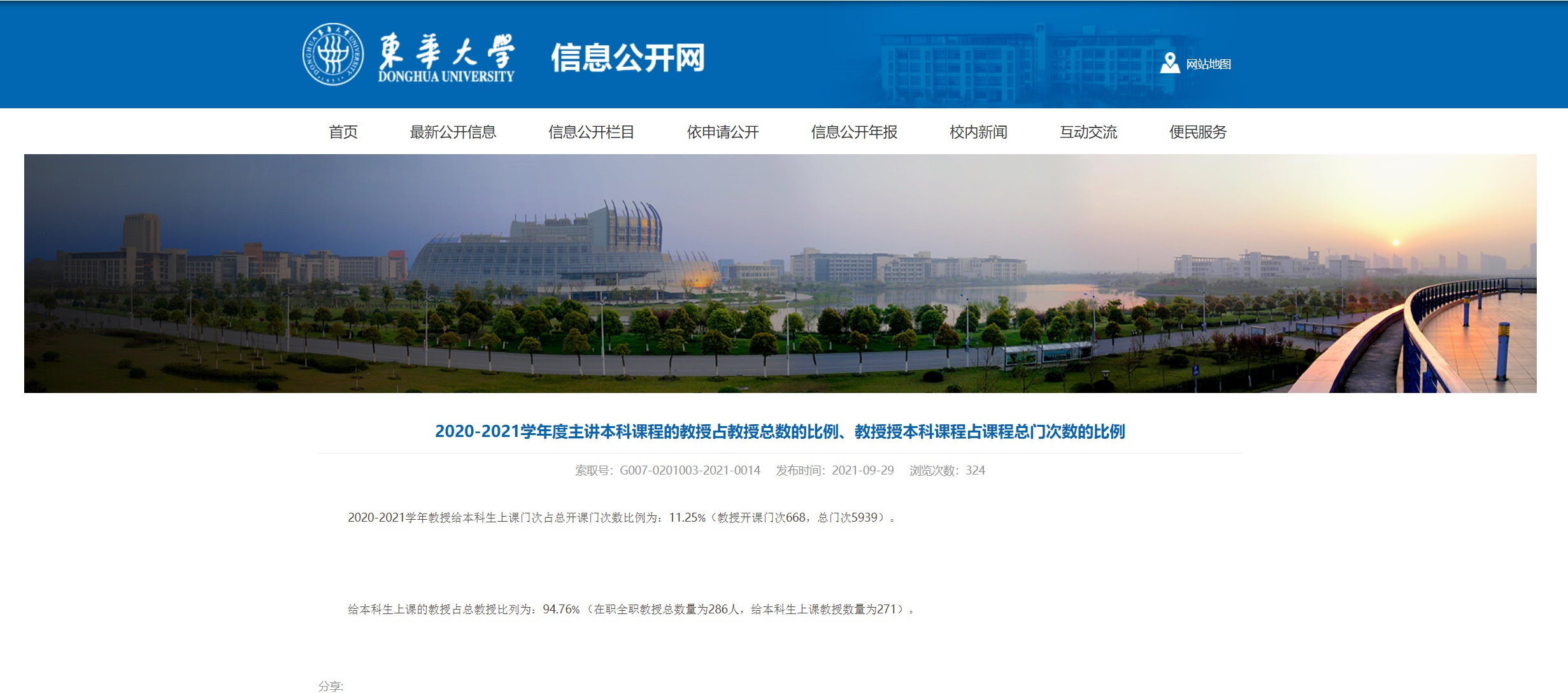 2020-2021学年教授给本科生上课门次占总开课门次数比例为:11.25%(教授开课门次668,总门次5939)。给本科生上课的教授占总教授比列为:94.76% (在职全职教授总数量为286人,给本科生上课教授数量为271)。