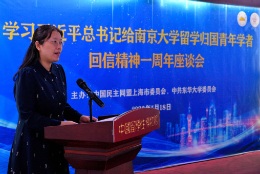 刘承功代表学校向共同主办座谈会的民盟上海市委,以及积极支持本次活动的上海市欧美同学会表示感谢。他指出,在习近平总书记重要回信一周年的重要日子召开本次座谈会、学习重温回信精神,将进一步凝聚激励广大留学归国青年人才为中国式现代化团结奋斗。刘承功希望“海归”青年教师要心怀国之大者,赓续留学报国的光荣传统,在强国建设、民族复兴的新征程上贡献智慧力量;要勇担历史使命,坚守教书育人岗位,助力高水平科技自立自强;要坚持扎根中国大地,发挥自身优势,用心用情讲好中国式现代化的生动故事。